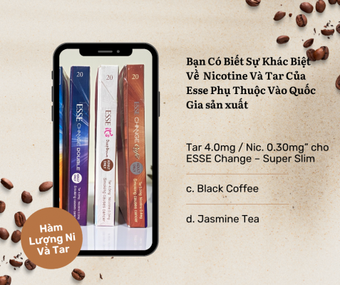 - Một số nguồn: tar khoảng 4.0 mg, nicotine ~ 0.30 mg. Ví dụ: “Tar 4.0mg / Nic. 0.30mg” cho ESSE Change – Super Slim.