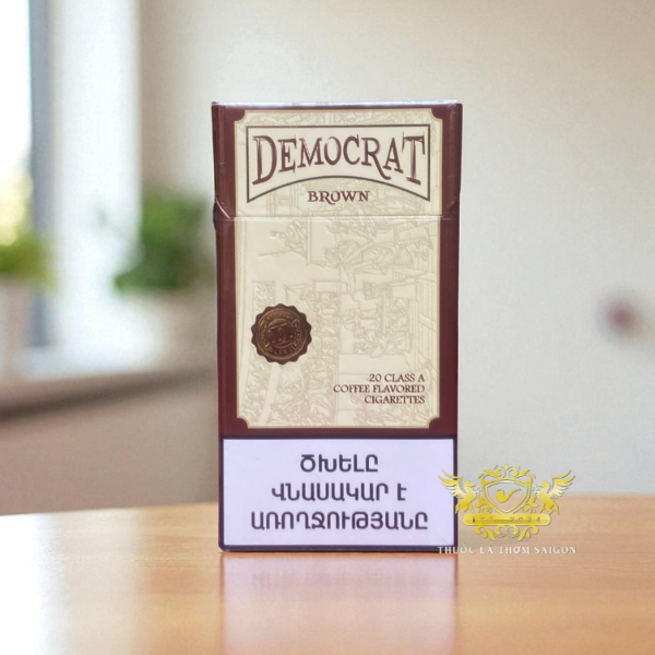 Democrat Coffee Brown là dòng thuốc lá thuộc thương hiệu Democrat, xuất xứ từ Nga/Armenia, gắn liền với hình ảnh sang trọng và hương vị chuẩn quý ông hiện đại. Sản phẩm nhanh chóng chiếm được cảm tình người dùng Việt nhờ hương cà phê rang xay tự nhiên và định dạng slim – mảnh, dài, rất thời trang.