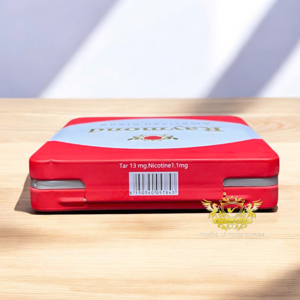 - Thiết kế hộp thiếc cao cấp: Khác với các dòng thuốc lá thông thường, Raymond Red được đóng gói trong hộp thiếc sang trọng, giúp bảo quản hương vị tốt hơn. Mỗi hộp thiếc chứa 5 hộp nhỏ, tiện lợi để mang theo hoặc chia sẻ.